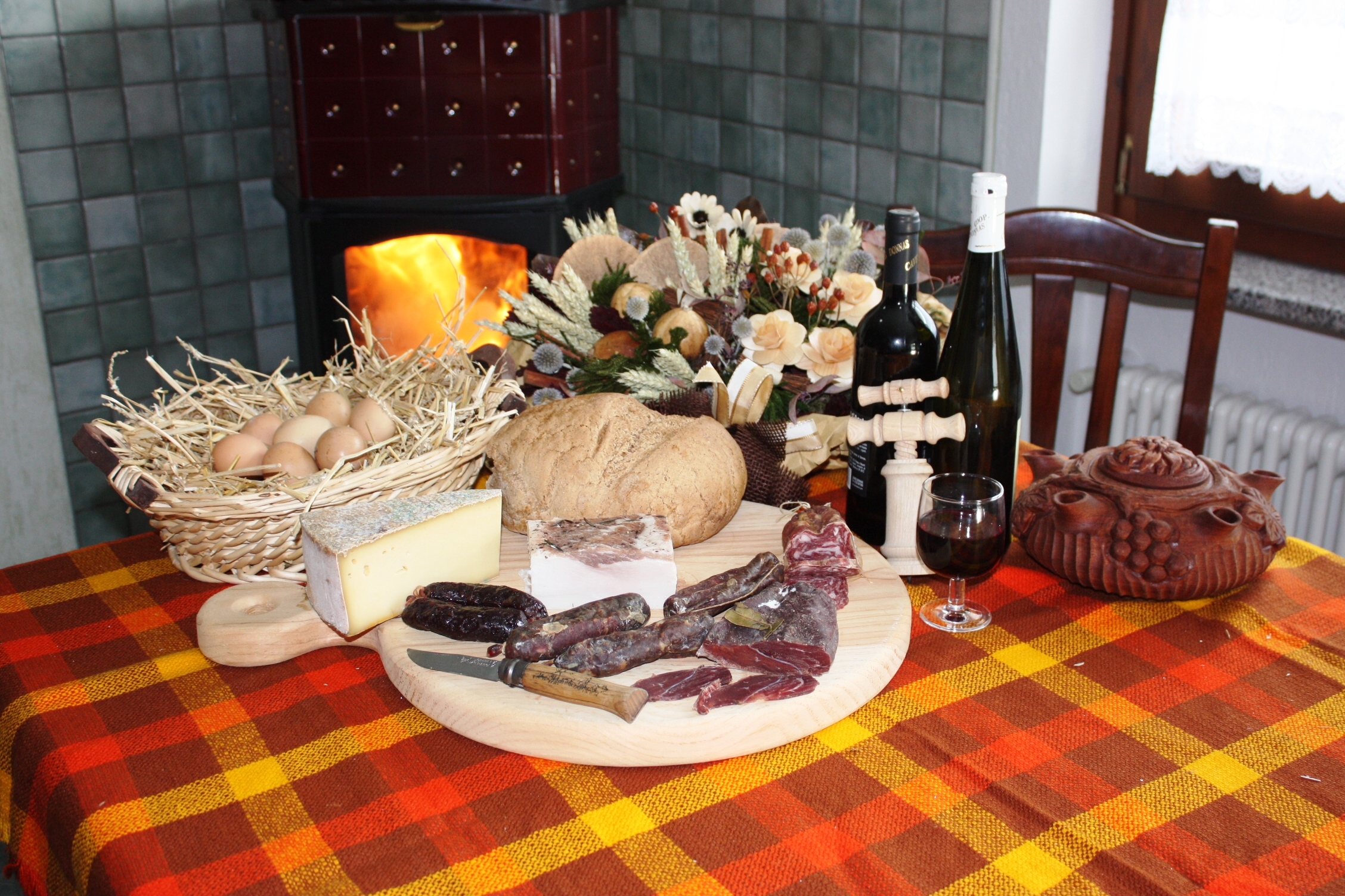 Wir garantieren unsere natürlichen Landes - Bioprodukte: das Fleisch , der Käse, die Milch, die Wurstarten , die Eier und das Gemüse sind alle ehrliche Bioprodukte.